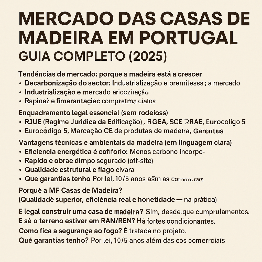 Guia extenso, prático e atualizado para proprietários, investidores e autarquias. Inclui passos, justificações legais e equipa técnica a contratar. Preparado para o blog da MF Casas de Madeira. Atualizado a: setembro de 2025 1) Antes de tudo: é possível construir em solo rústico? Depende do caso. Em Portugal, a regra